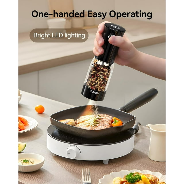 Tomeem Electric Salt and Pepper Grinder Set with LED Power Indicator, Type-C Rechargeable, 5 Adjustable Coarseness, 2 Pack