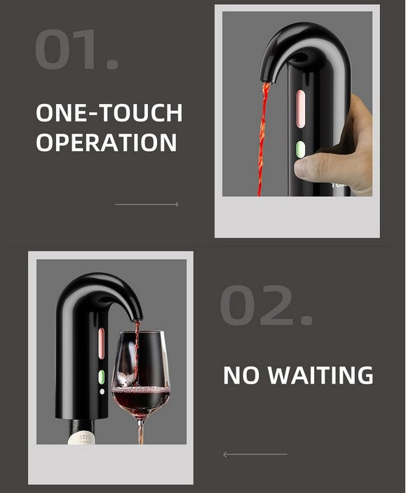 - [One-Touch Operation] Enjoy effortless wine pouring with our user-friendly electric wine aerator. The one-touch method means no complicated settings or attachments, making it accessible to all.
