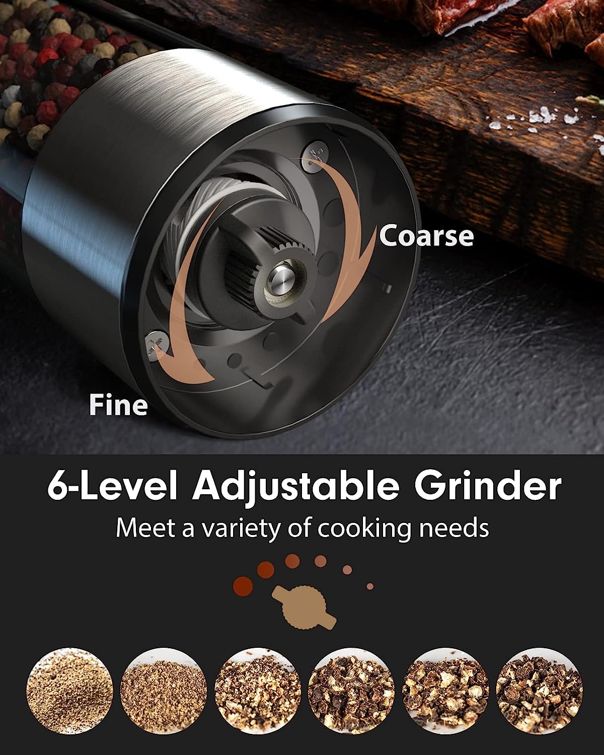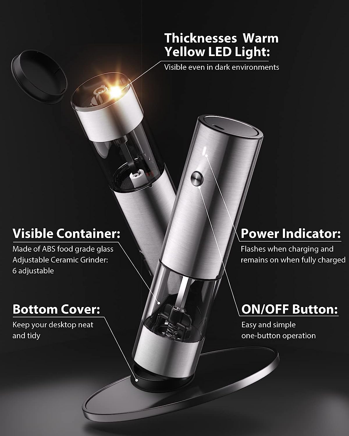 ![[Upgraded Larger Capacity] Electric Salt and Pepper Grinder Set Rechargeable with LED lights - Stainless Steel Automatic Pepper Grinder and Salt Grinder Refillable with 6 Adjustable Coarseness](http://ustomeem.com/cdn/shop/products/81yFC1RKBwL._AC_SL1500.jpg?v=1680061639&width=1445)