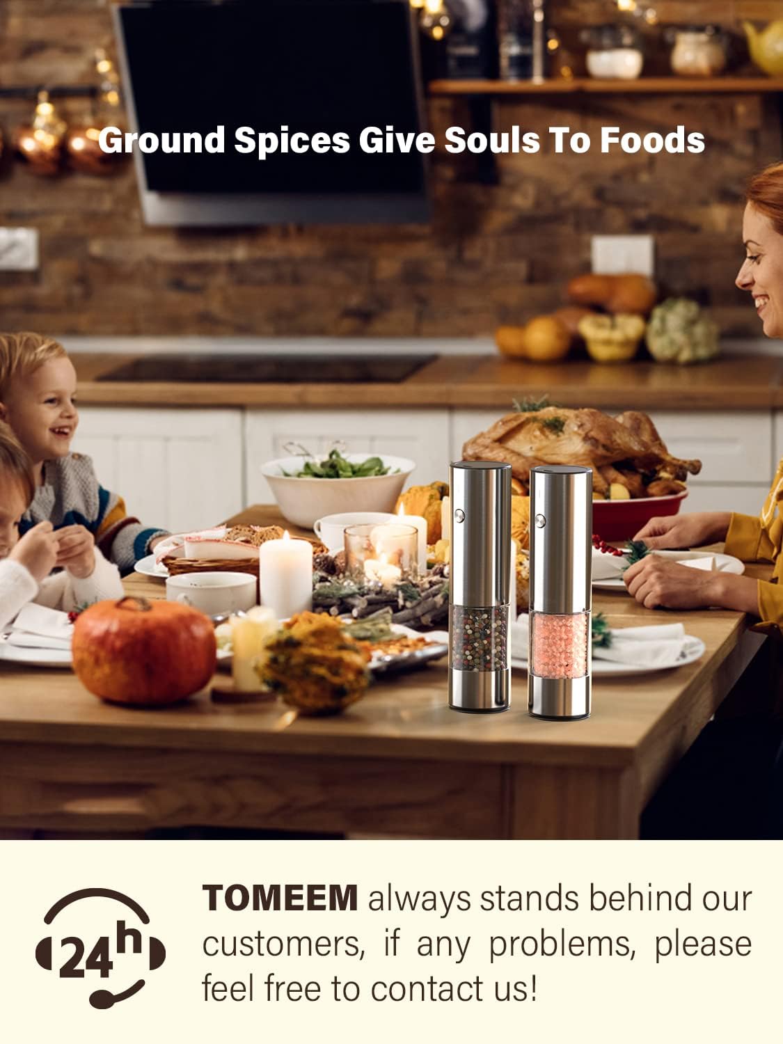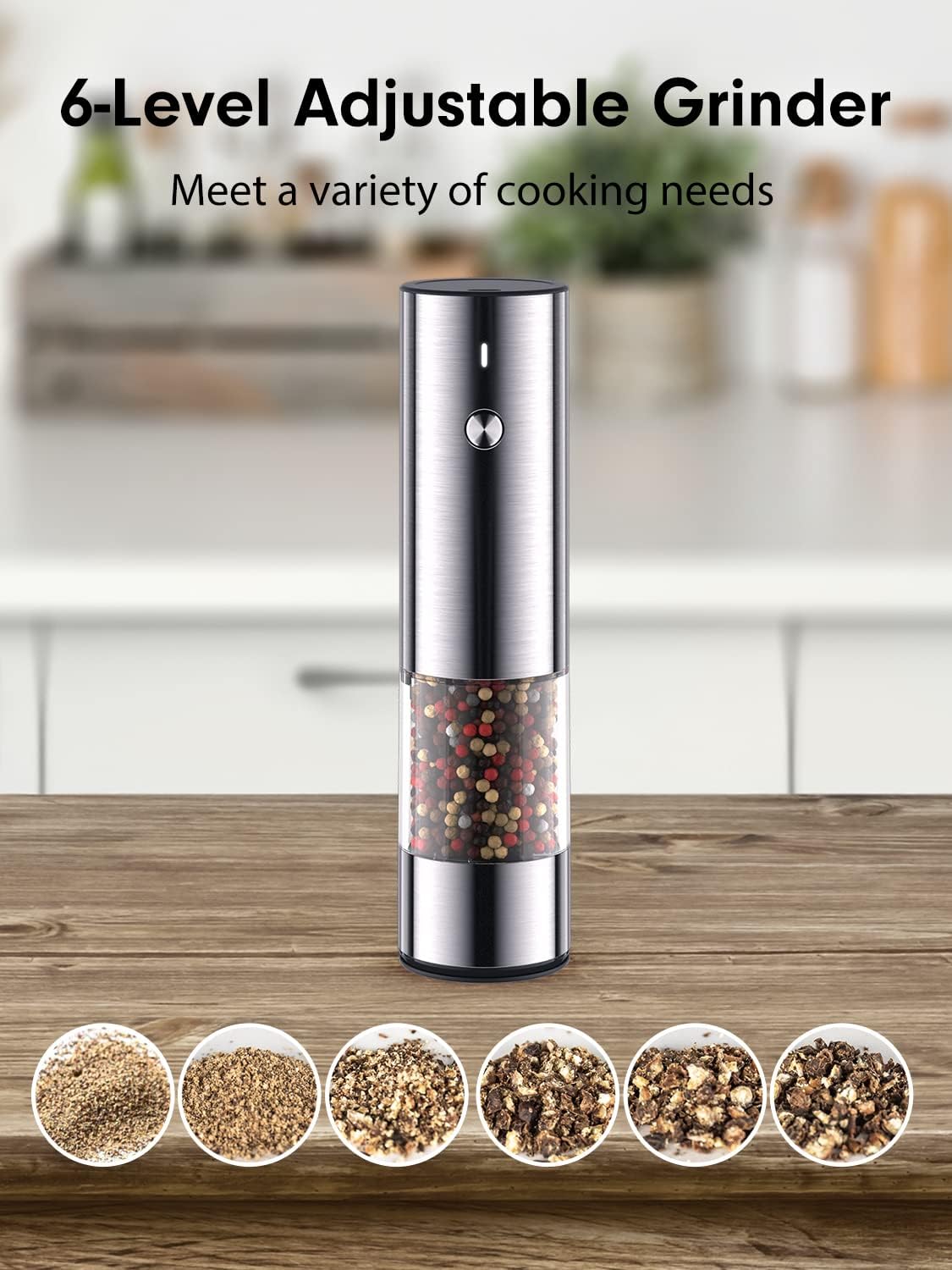 - [Effortless Grinding] With just the press of a button, TOMEEM electric salt and pepper grinder makes grinding spices a breeze. Perfect for busy meal preparations, children, the elderly, and those with arthritis.