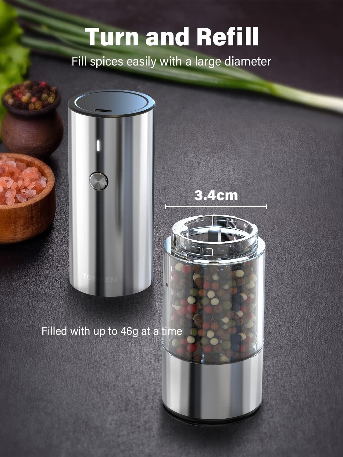 ![[Upgraded Larger Capacity] TOMEEM Electric Salt and Pepper Grinder Set Stainless Steel - TypeC Rechargeable Automatic Pepper Grinder and Salt Grinder with LED Light Refillable](http://ustomeem.com/cdn/shop/products/718T7tzsQML._AC_SL1500.jpg?v=1680059763&width=1445)