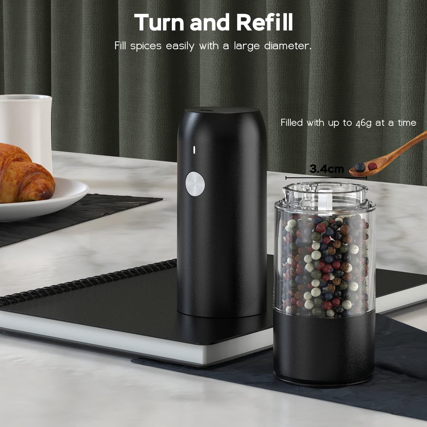 - [Larger Capacity] While keeping the original function, we have increased the capacity of the transparent container from 20.5g to 46g, making it easier for you to add more seasoning at once.